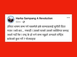 हर्क साम्पाङले १२ घण्टामा लेखे १२ स्टाटस ! ओलीलाई दिए ‘हाउडी र गोज्याङ्ग्रा’को संज्ञा