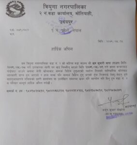 महिना अघि त्रि.न.पा-२ वडा कार्यलयले हार्दिक अपिल पनि गरेको थियो । सदस्य राउत भदै ८ गते घर बाट उपचारको लागि बिराटनगर गएको र ९ गते कालाबन्जर बाट गाईघाट