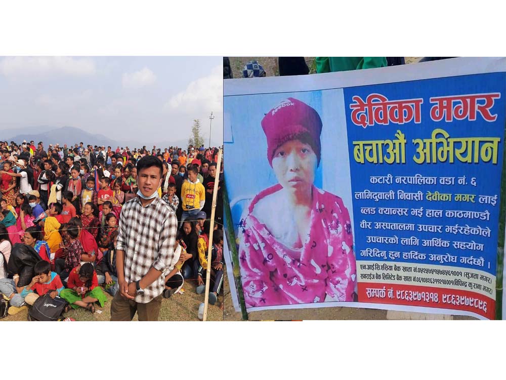 उदयपुर कटारी नगरपालिका वार्ड न ६ लामिदुवाली कि २४ बर्षिय देविका मगरको गत ३ महिना देखि ब्लड क्यान्सरबाट लडिरहेकि छिन । न्यून आर्थिक अवस्था भएको मगर परिवारलाई यति खेर चिन्ता बढेको छ । क्यान्सर बिरामिको उपचारको मगरलाई धेरै पैसा सकिसकेको र अझ धेरै लाग्ने हुदा काठमाडौ स्थित बिर अस्पतालमा उपचाररत मगर लाई हाल देस बिदेस […]