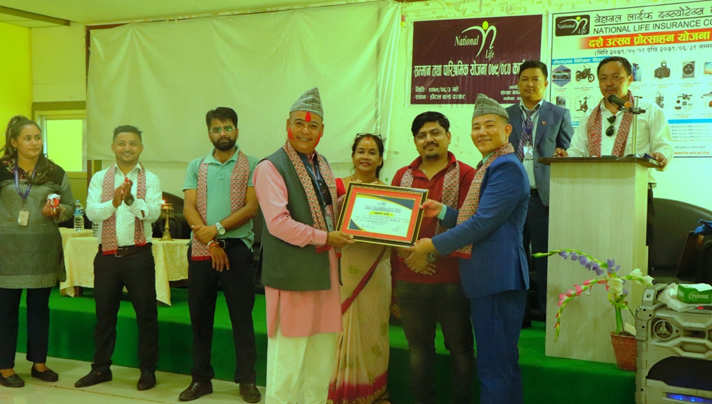 नेशनल लाईफ इन्स्योरेन्स शाखा गाईघाटद्धारा अभिकर्ताहरुलाई सम्मान