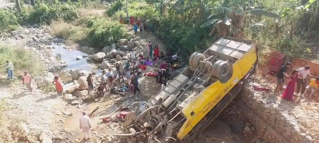 उदयपुरमा स्कुल बस दुर्घटना हुँदा चालकसहित तीन जनाको मृत्यु
